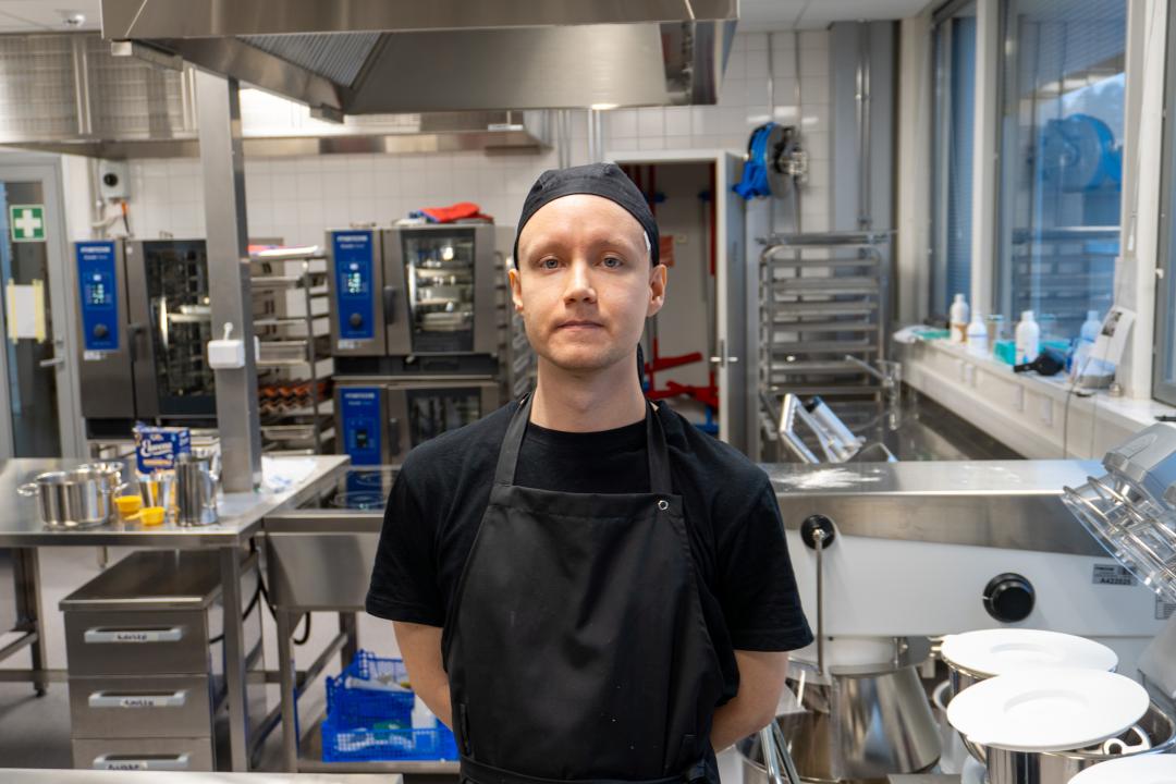 Hiekkaharjun opetuskeittiöllä harjoitteleva Jesse lähti opiskelemaan palvelutyöntekijäksi, sillä koulutus tarjosi mahdollisuuden päästä takaisin työelämään yli puolen vuoden työttömyyden jälkeen.