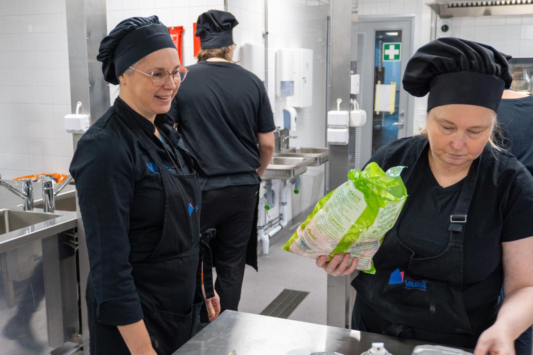 Jesse ja Merilin ovat oppineet koulutuksessa paljon uutta esimerkiksi hygieniasta ja ergonomiasta. Käytännön työtehtäviä on harjoiteltu monipuolisesti niin oppilaitoksen keittiössä, pesulassa kuin varastossakin.