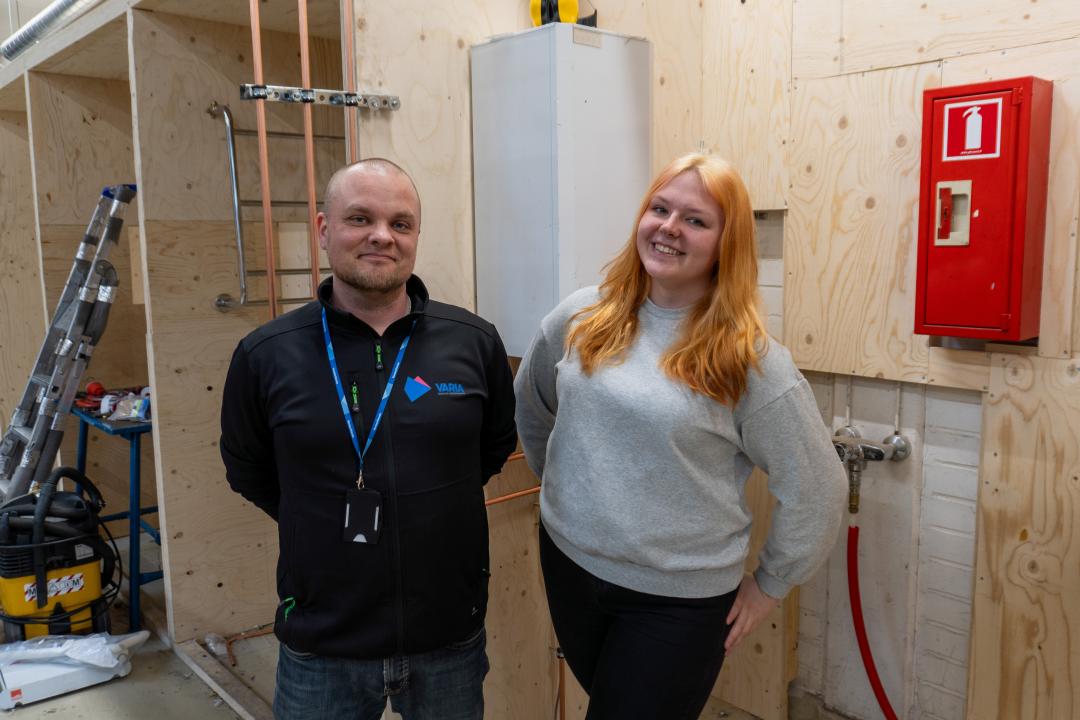 Ammattiin opiskelu kasvatti varmuutta ja toi Yolandalle hienoja mahdollisuuksia. Monipuolinen talotekniikka-ala tarjoaa jokaiselle jotain, kertovat Yolanda ja Mikko-opettaja.