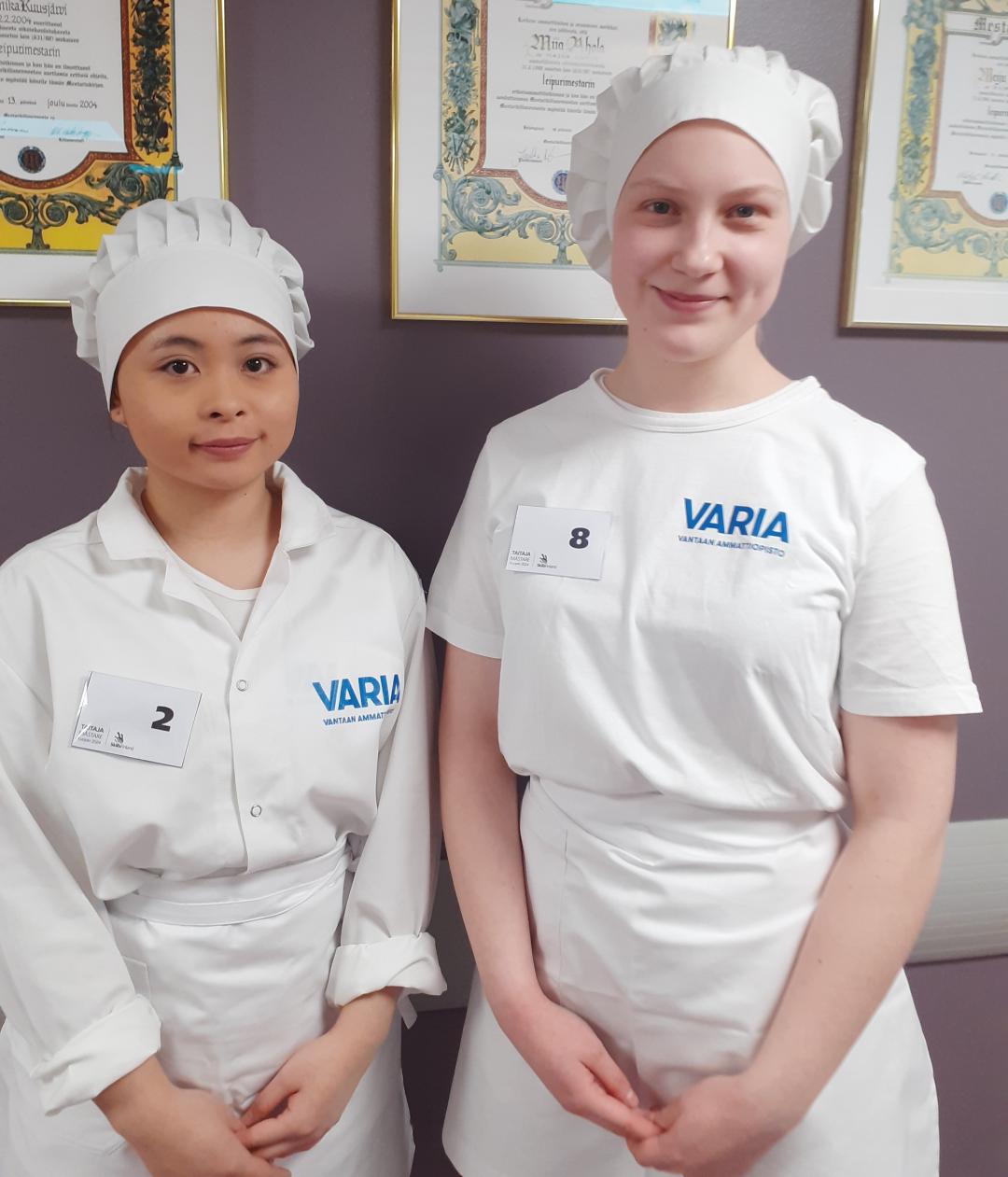 Semifinaaliviikolla ihailtiin myös Varian kuljetuslogistiikan ja leipuri-kondiittoriopiskelijoiden taidonnäytteitä. Moona Khatsili, 17, ja Roosa Tuominen, 16, loihtivat leivonnaisia Stadin ammattiopistossa järjestetyssä leipuri-kondiittorien semifinaalissa.