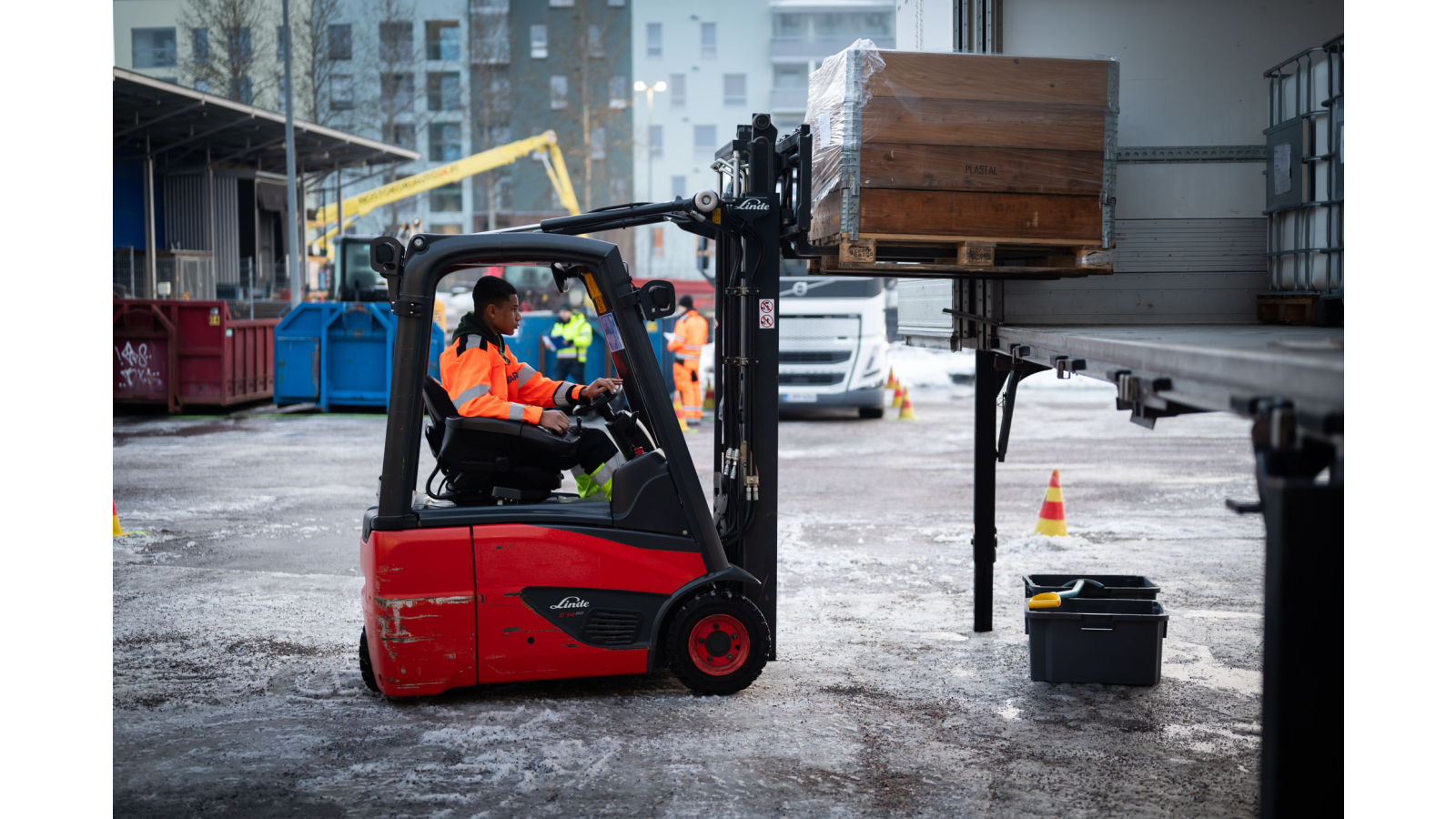 Kuljetuslogistiikan semifinaalissa Varian Aviapoliksen toimipisteellä kilpailleet Daniel Osagie, 17, John Nyberg, 18, ja Helena Jyrkkärinne, 17, ottivat päivän aikana taitavasti haltuun niin kuorma-auton, linja-auton kuin työkoneenkin.
