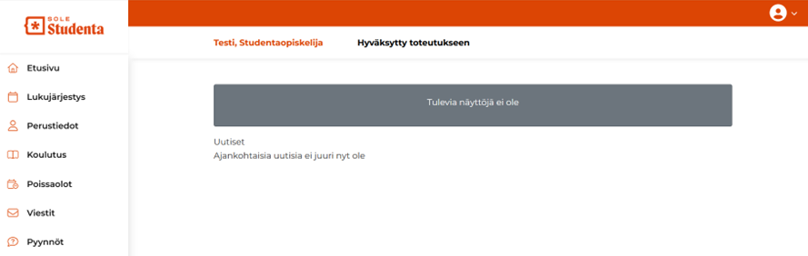 Vasemmalla olevasta valikosta pääsee katsomaan opiskelijan tietoja, kuten lukujärjestystä, suorituksia ja poissaoloja.